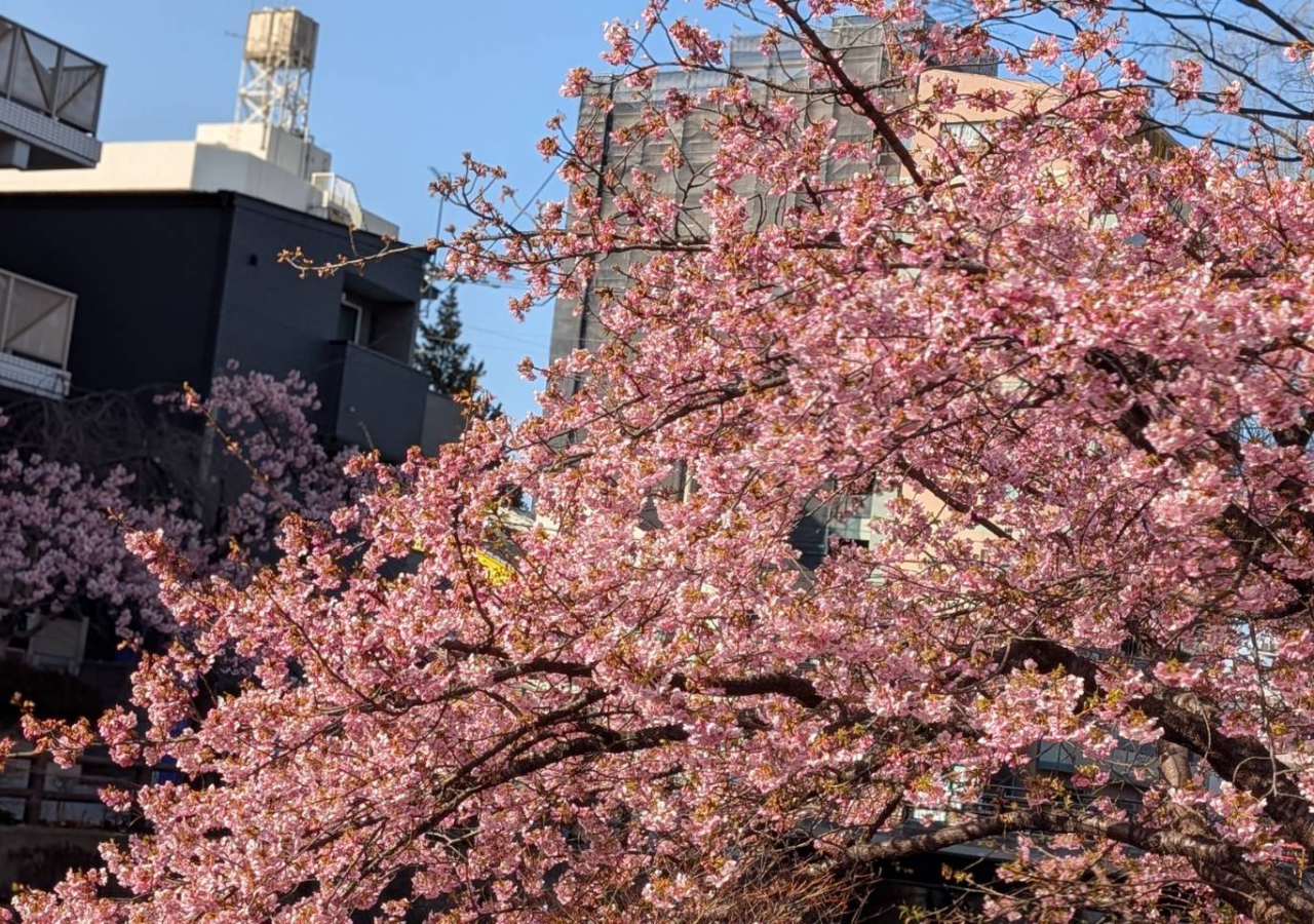 ライフバランス近くの坂川沿いにきれいに河津桜が咲いていました。