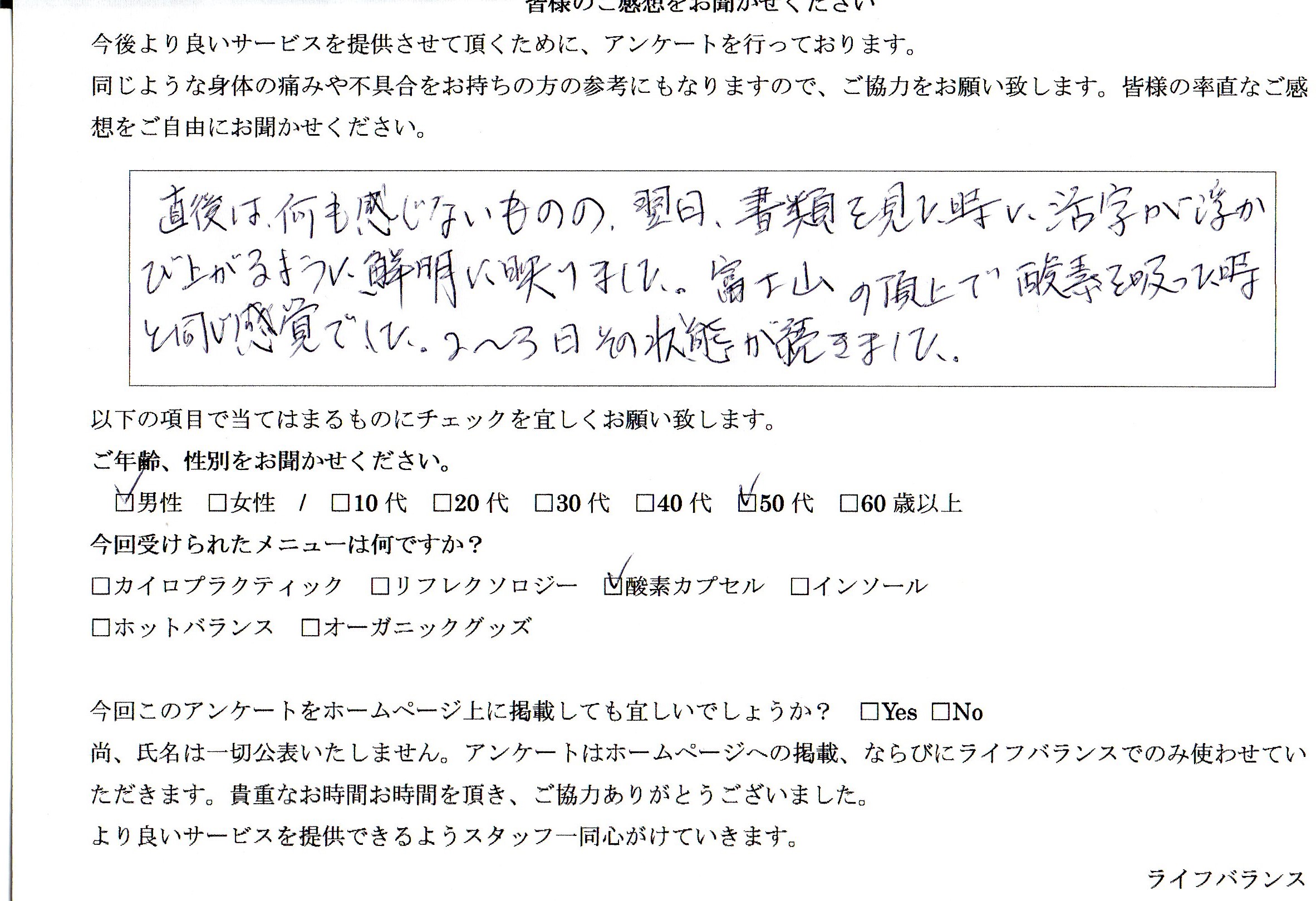 HOME > お客様のお声 > 酸素カプセル後の効果 2025年8月12日 2025年8月14日 ご予約方法 ライフバランスでは、WEB予約・LINE予約の2つの方法をご用意しています。ご都合の良い方法でお気軽にご予約ください。 WEB予約 24時間いつでも予約可能。空き状況を確認しながらスムーズにご予約いただけます。 WEB予約する LINE予約 公式LINEから簡単予約。ご質問や事前相談もLINEでお気軽にどうぞ。 LINEで予約 お電話でのご予約も承っております: 047-361-1233 この記事を書いた人 最新記事 ライフバランス ホームページへのご訪問ありがとうございます。千葉県松戸市の国際基準のカイロプラクティック・整体のライフバランスでございます。 〒271-0092 千葉県松戸市松戸1836目黒ビル2階、 ☎︎047-361-1233 2026/01/1965歳を過ぎても元気に動く! 2026/01/19じゃあ、あんたが作ってみろよ~出汁の魅力 2026/01/19身体に意識を向けてみよう ライフバランスの記事をもっと見る -お客様のお声